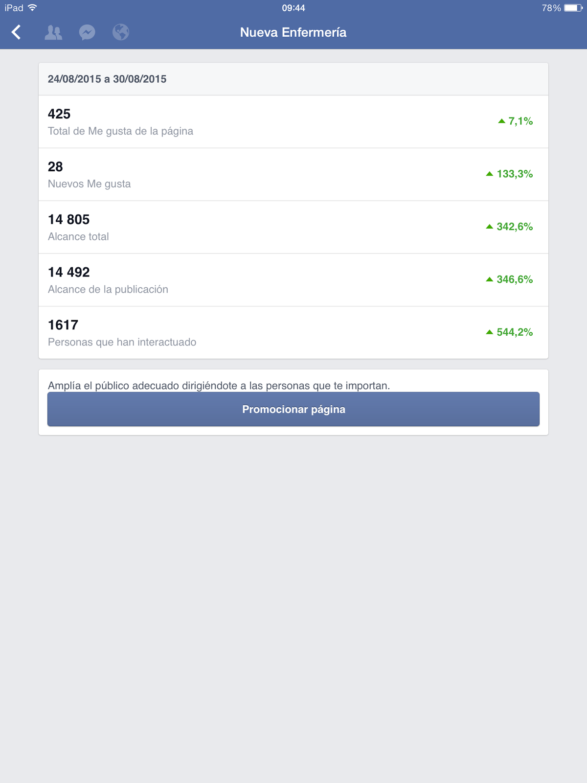Ejemplos de alcance de Nueva Enfermería en Facebook